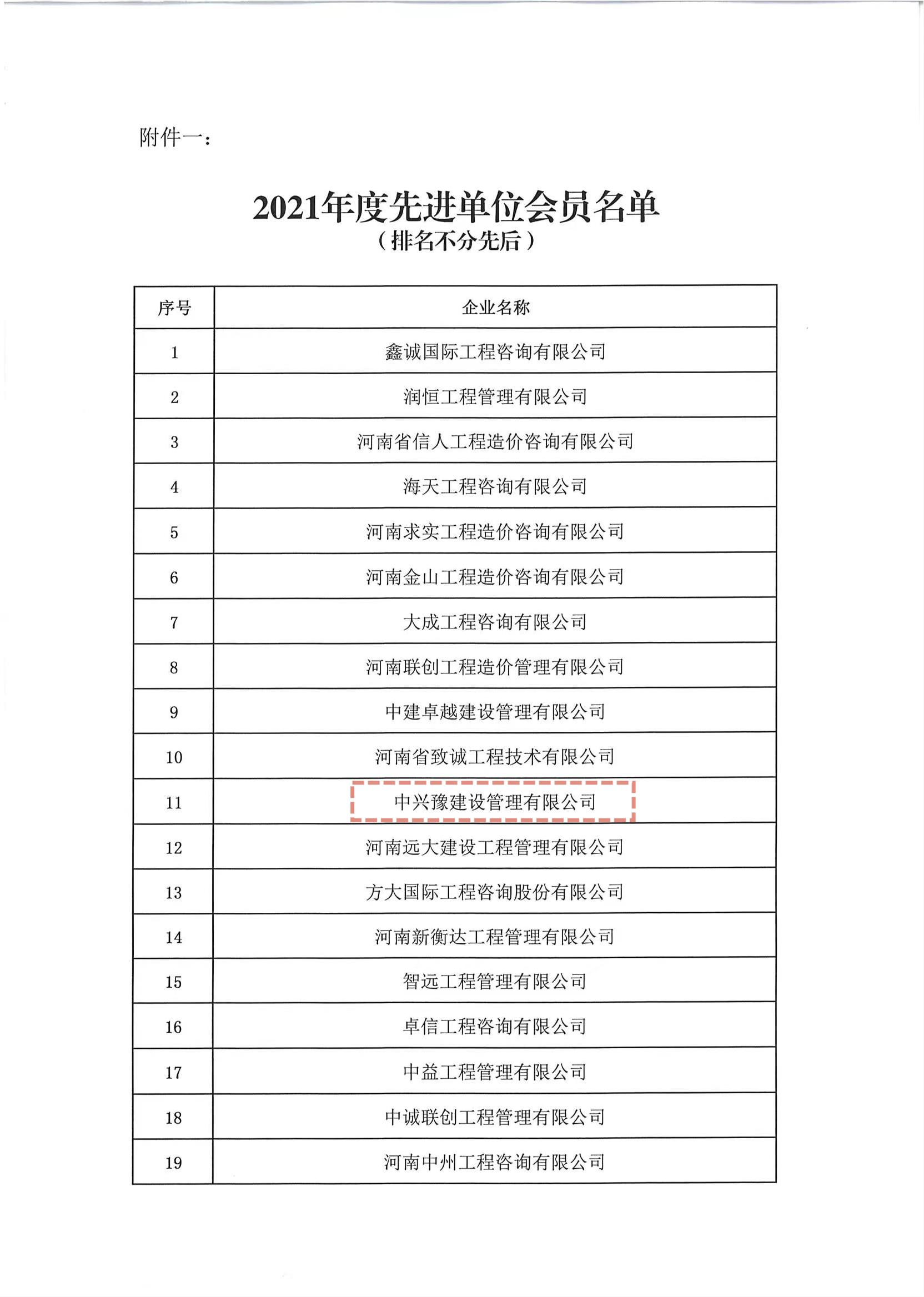 喜报|中兴豫荣获“河南省注册造价工程师协会2021年度先进单位会员”荣誉称号