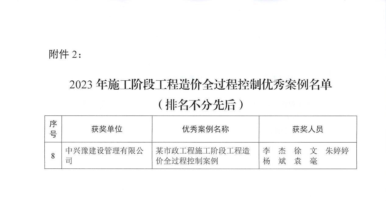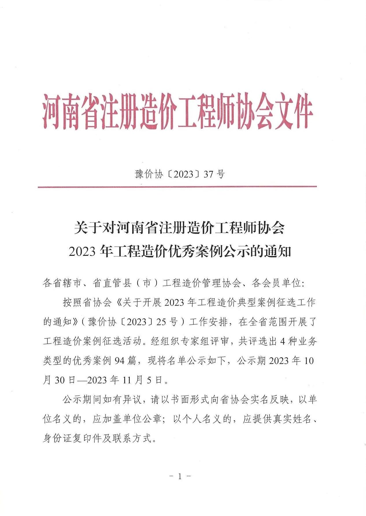 10月30日,10月30日,河南省注册造价工程师协会公布了“河南省注册造价工程师协会2023年工程造价优秀案例公示的通知”,由九游官方版web站入口负责的“某市政工程施工阶段工程造价全过程控制案例”项目榜上有名。